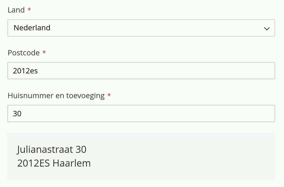 A formatted address is shown when the postcode and house number combination is valid (this is the default output option):
